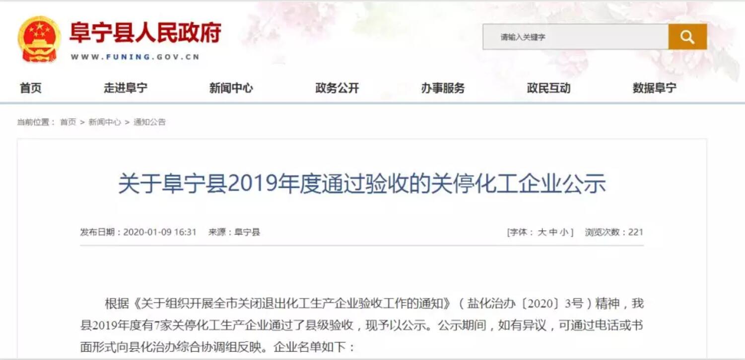 2019年阜寧縣關(guān)閉化工生產(chǎn)企業(yè)名單