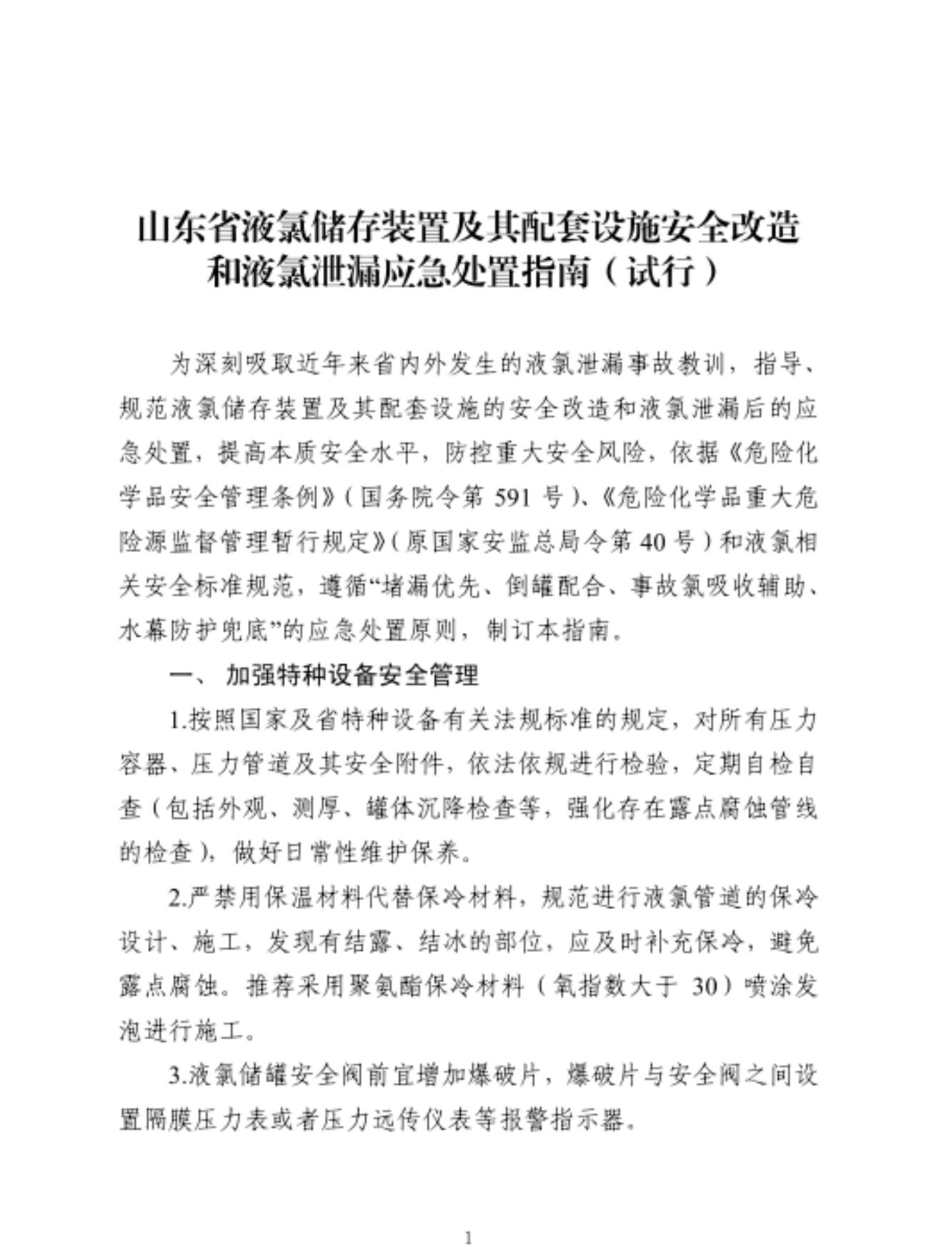 附件:山東省液氯儲存裝置及其配套設施安全改造和液氯泄漏應急處置指南(試行)