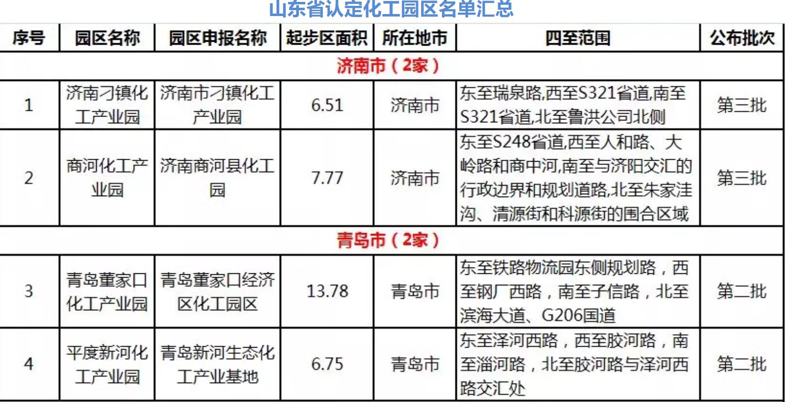 山東省認(rèn)定化工園區(qū)名單匯總