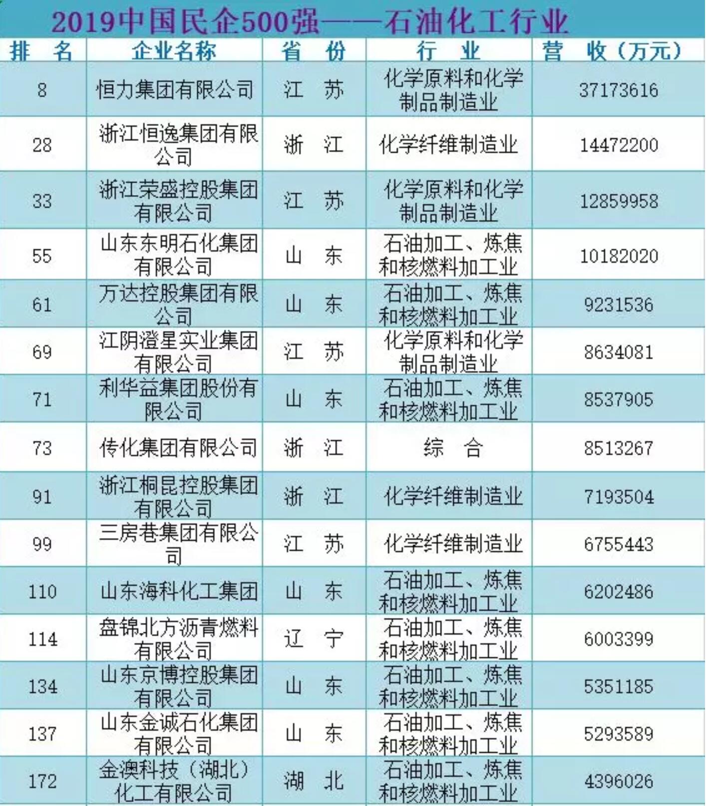 重磅|2019中國民企500強(qiáng)出爐,55家石化企業(yè)榜上有名