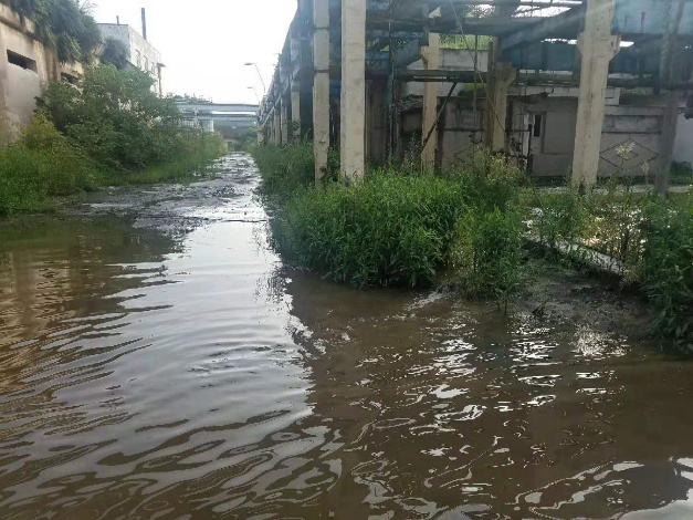 雨后廠區(qū)內(nèi)積水嚴(yán)重。圖片來(lái)源/生態(tài)環(huán)境部