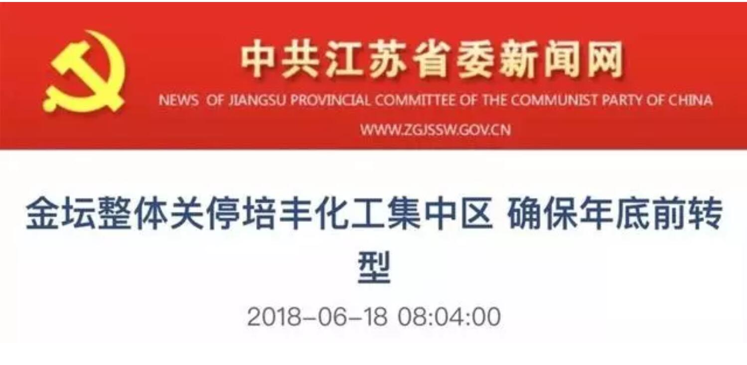 據(jù)當(dāng)?shù)毓俜矫襟w2018年報(bào)道顯示,常州市金壇區(qū)于2016年8月1日收到中央環(huán)境保護(hù)督察組交辦的環(huán)境信訪事項(xiàng)后,持續(xù)對園區(qū)企業(yè)進(jìn)行了提標(biāo)改造。作為2016年中央環(huán)保督察交辦的38個(gè)化工園區(qū)問題之一,因未能滿足500米衛(wèi)生防護(hù)距離內(nèi)居民全部拆遷的要求,區(qū)委、區(qū)政府決定從根源上消除環(huán)境隱患,結(jié)合將來的區(qū)域發(fā)展規(guī)劃,取消培豐化工集中區(qū)產(chǎn)業(yè)定位,按化工企業(yè)整治的要求,對所有企業(yè)實(shí)行關(guān)停。